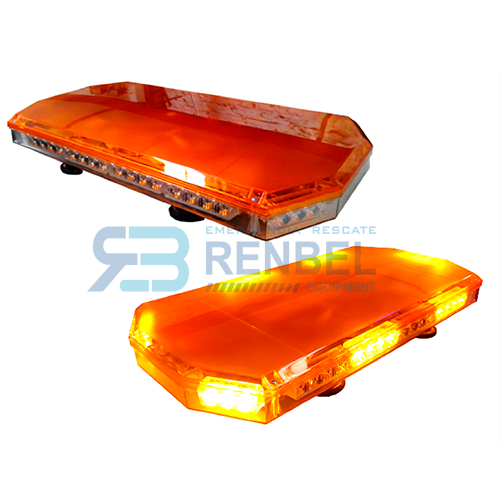 Baliza Mini Barra 12V, fabricado en Policarbonato de alto impacto. Catorce (14) módulos LED en todo su perímetro (360º), Distintos tipos de destellos, controlados desde cabina de conducción del vehículo, Diseño aerodinámico plano, que reduce el impacto del viento con el vehículo.