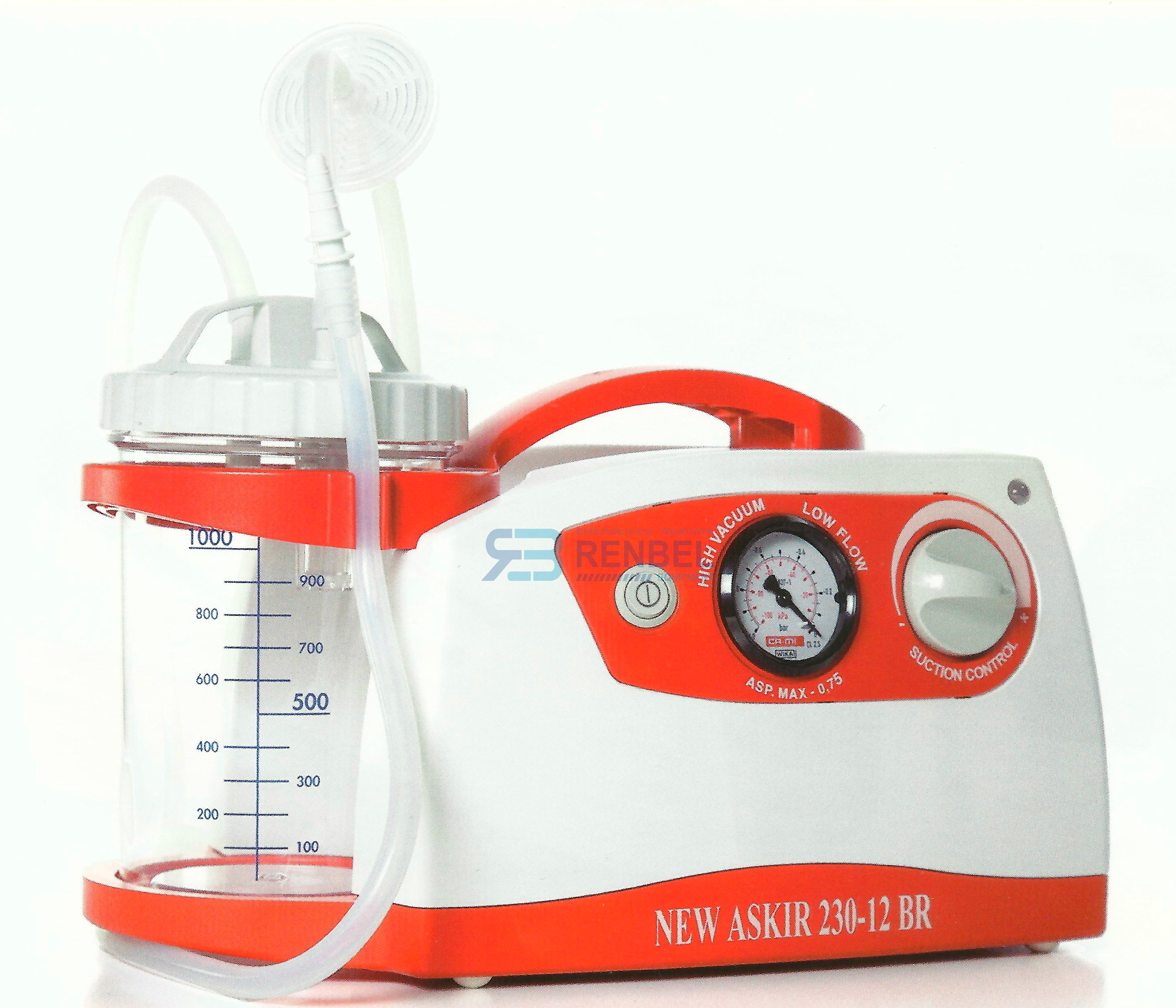 Aspirador de secreciones corporales idealmente diseñado para el uso en ambulancias.