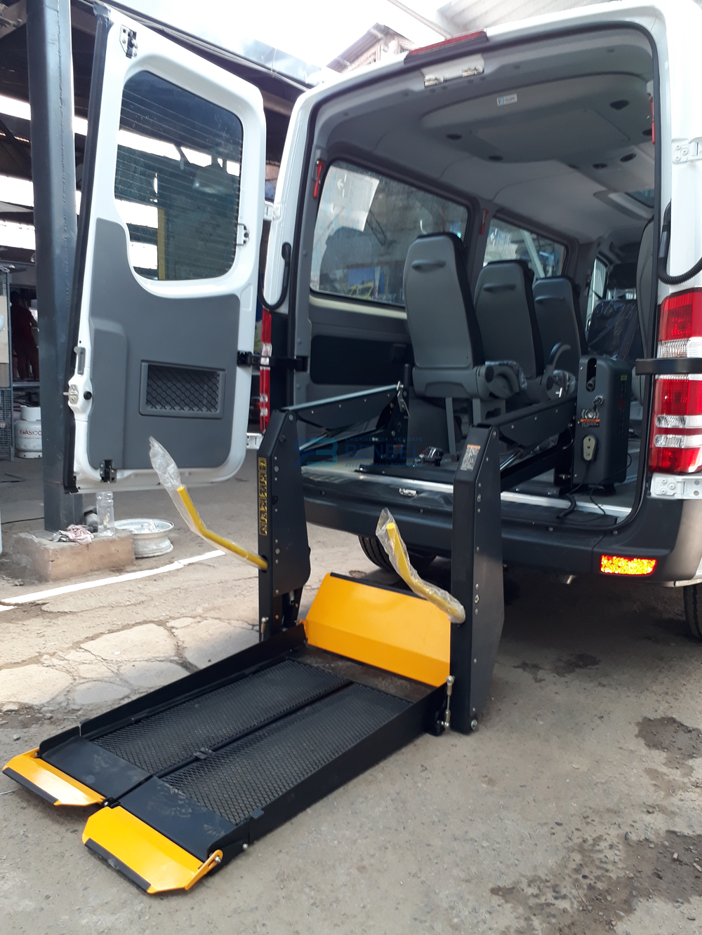 Proporciona facil acceso para personas para las personas en silla de ruedas, para entrada / salida de vehículos, plataforma fiable y segura, cuya capacidad de carga puede ser de hasta 300 Kilos.